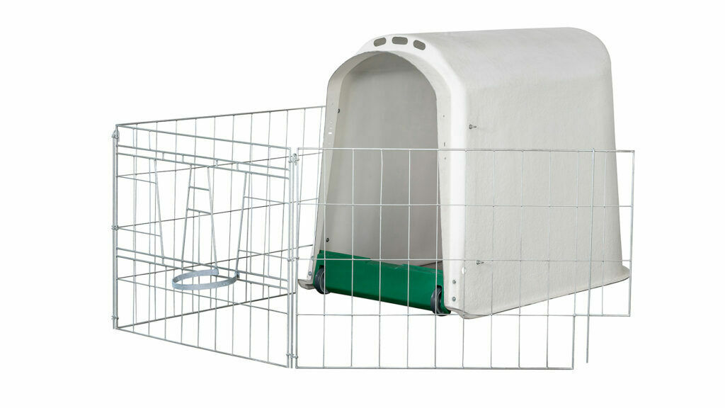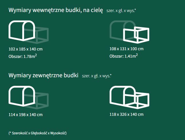 Legowisko dla cieląt Comfort + ogrodzenie BasicLegowisko Comfort to idealne rozwiązanie dla cieląt w wieku 0–8 tygodni. Wysoka budka zapewnia wygodny dostęp do zwierzęcia, a plastikowy próg zatrzymuje słomę i ułatwia czyszczenie. Zintegrowane kółka umożliwiają łatwe przemieszczanie.